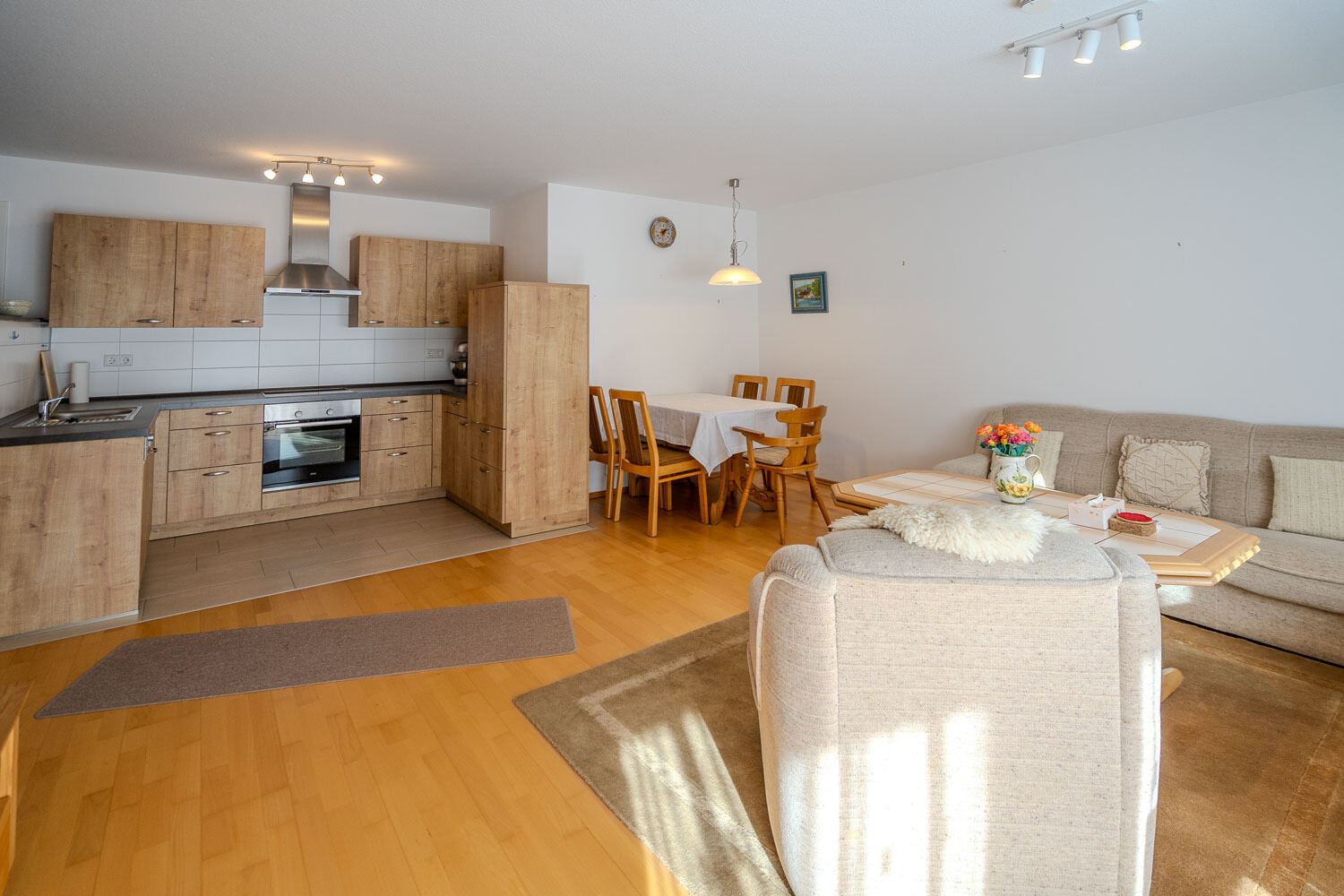 Die Wohnung ist hell und freundlich gestaltet und bietet auf großzügigen Flächen ein komfortables Zuhause. Besonders hervorzuheben ist die offene Küche, die viel Raum für kulinarische Kreationen bietet. Vom Wohnbereich aus gelangen Sie auf den nach Süden ausgerichteten Balkon, der viel Sonne und eine schöne Aussicht garantiert – perfekt für entspannte Stunden im Freien.